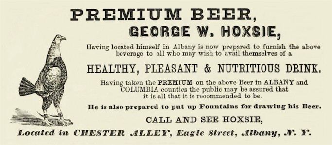 W. Hoxsie's Premium Beer" vertically embossed on a 7" tall x 2⅝"