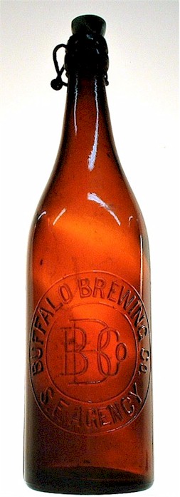 finish beer bottle. c.1895. Label at right